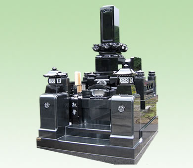 蓮の花をかたどった石碑を使った高級モデルです。石碑の周りには、格子状の柵をめぐらし、さらに高級感を増しています。